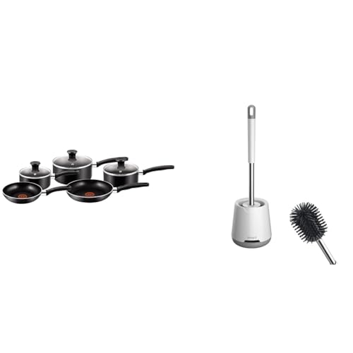 Tefal Essential, Aluminium Pots and Pans Set, 16 cm, 18 cm and 20 cm Saucepans with Lids & Ibergrif M34152 Silicone Toilet Brushes & Holders, Deep Cleaner