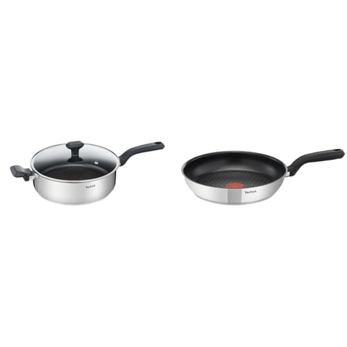 Tefal 26cm Comfort Max Stainless Steel Non-Stick Saute Pan and Lid, Silver & 20cm Comfort Max Stainless Steel Non-Stick Frying Pan, Silver