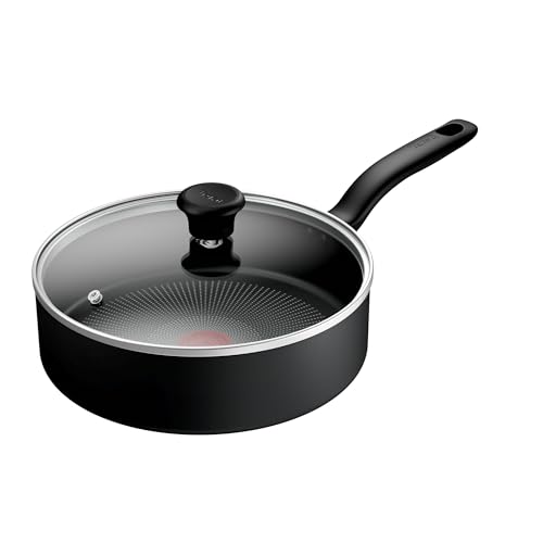 Tefal Titanium Stone Sautepan 26 cm + Lid, High-Performance Non-Stick Durable Coating, Metal Safe, All Hobs Including Induction, Thermo-Signal, Black, E1053345