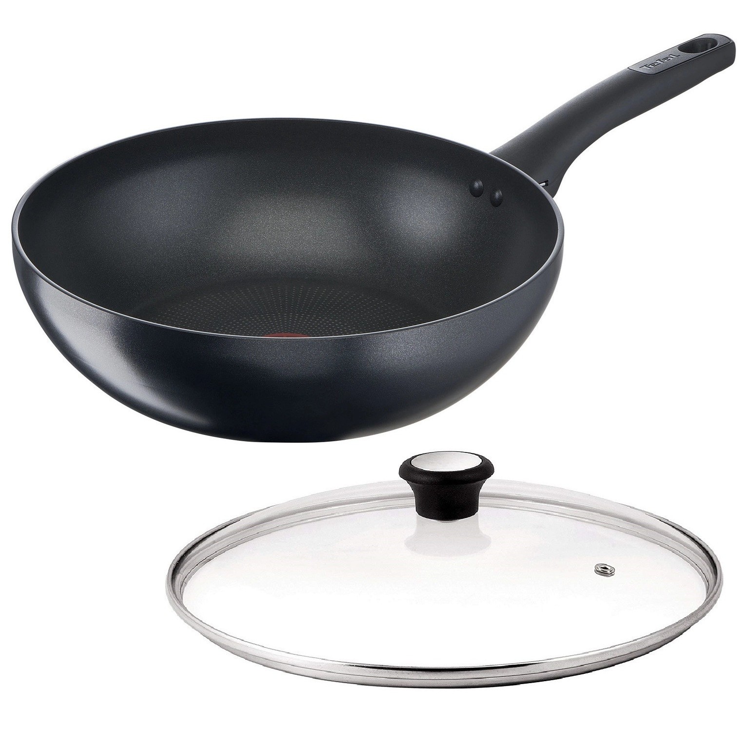 Tefal Titanium Wok Pan 28cm with Glass Lid Non Stick Stirfry Induction Black New