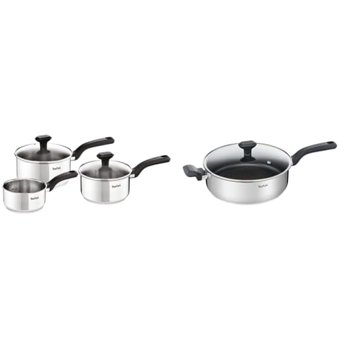 Tefal 3 Piece Comfort Max, Stainless Steel Saucepan Set, Silver & 26cm Comfort Max Stainless Steel Non-Stick Saute Pan and Lid, Silver