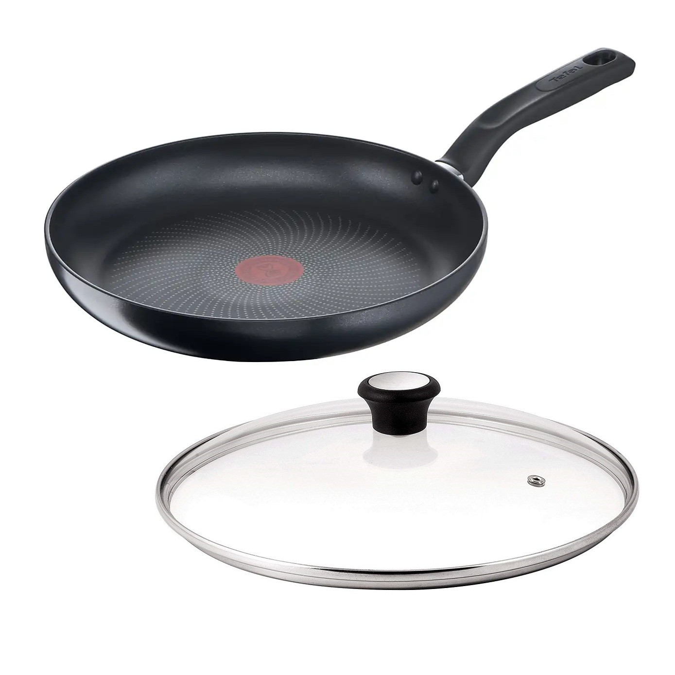 Tefal Resist 24cm Frypan with Compatible Transparent Glass Lid Bundle Black New