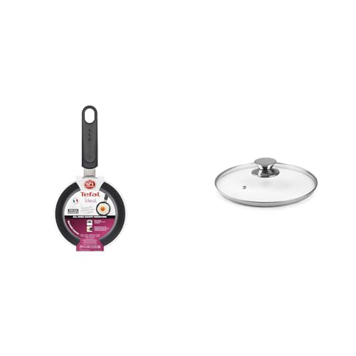 Tefal Ideal Mini One Egg Wonder Non-Stick Frying Pan, 12 cm, Non Induction, Black,package may vary & IBILI - 971612 - Glass Lid with Stainless Steel Knob, 12 Cm, Silver