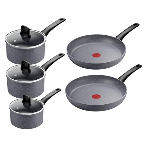 Tefal Healthy Cook On Cookware Set, Frying Pan (24/28 cm), Saucepan with Lid (16/18/20 cm), Mineralia Non-Stick Coating, Thermo-Signal™, Eco-Friendly, E120S544