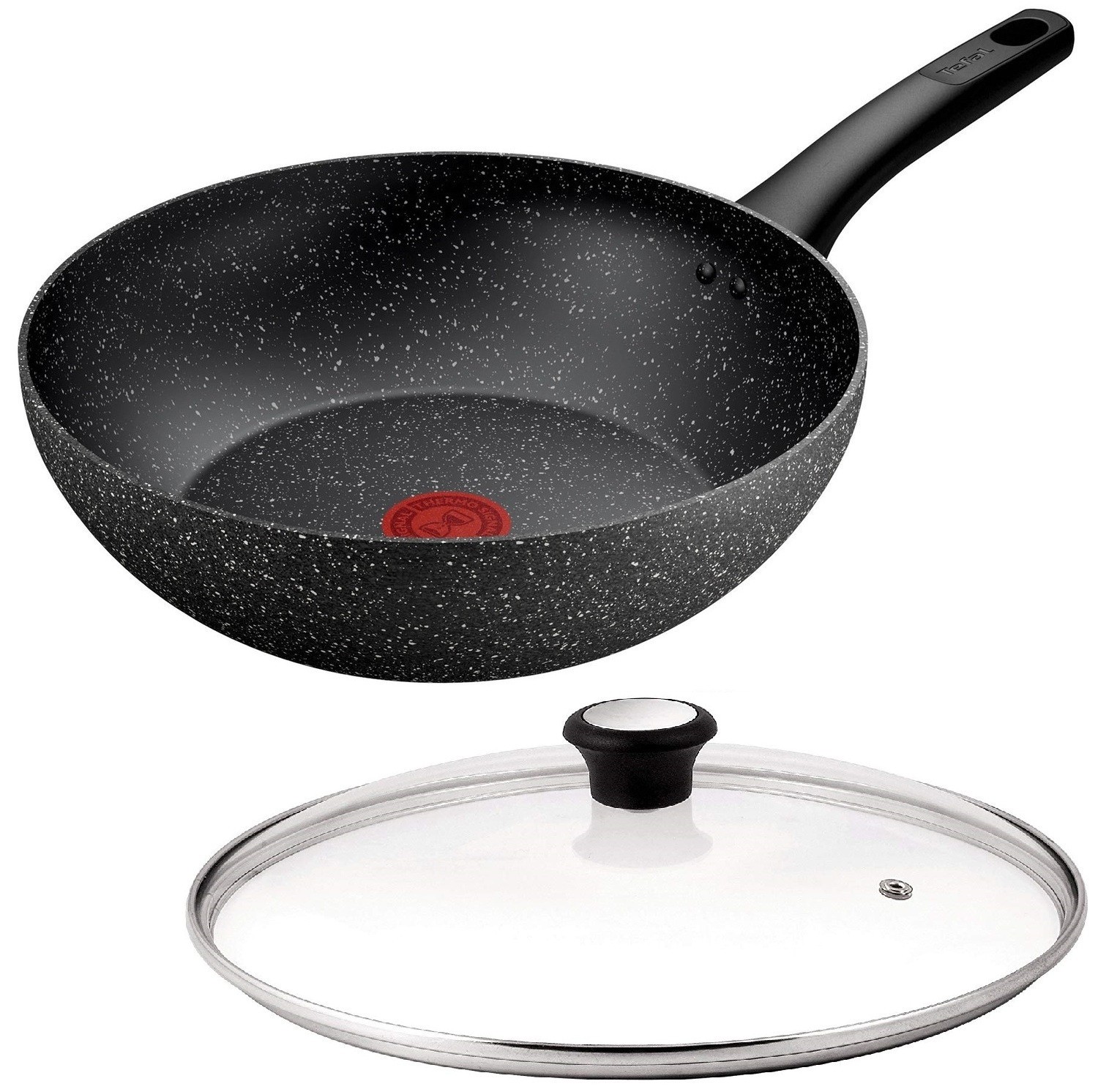 Tefal Stone Force Wok Pan 28cm with Glass Lid Non Stick Stirfry Induction Black