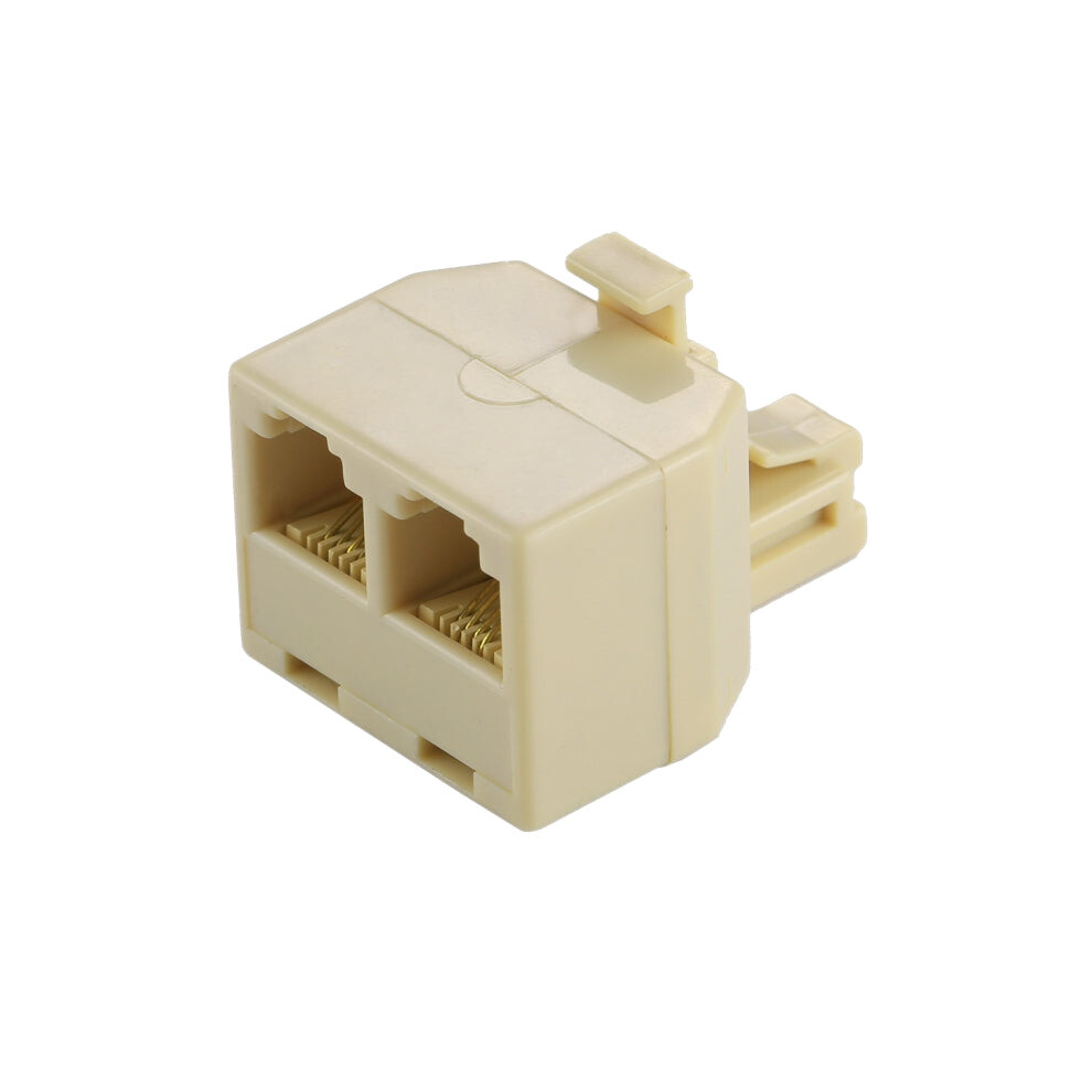 RJ11 Dual Ports Desktop Telephone Extension Cable Extender Connector Adapter