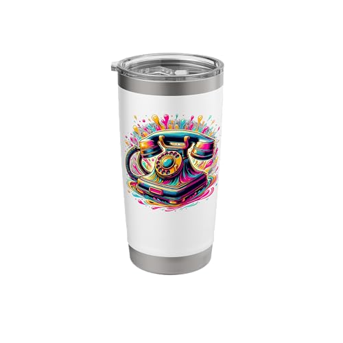 Colorful Line Art Vintage Telephone Landline Dial Stainless Steel Insulated Tumbler