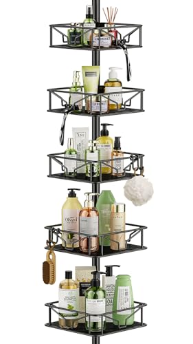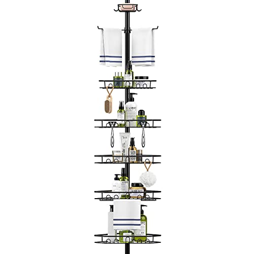 Mutool 5 Tier Adjustable Corner Shower Shelf, Telescopic Shower Caddy with Soap and Towel rack, No Drilling Bathroom Storage Organizer for Shampoo Accessories, Available for 137-290 cm Height, Black