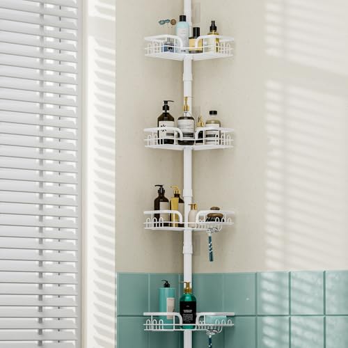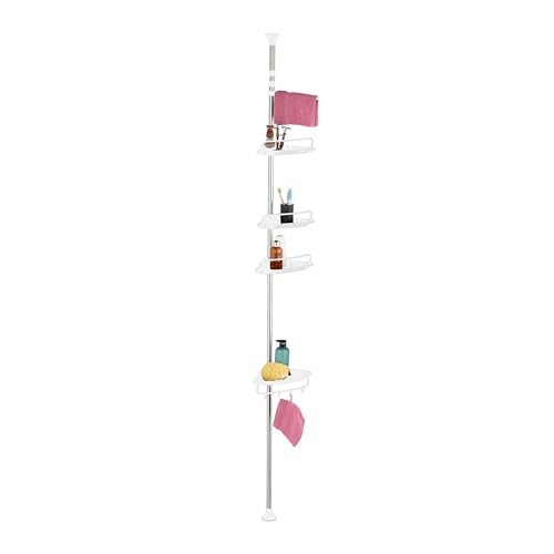 Holdfiturn Telescopic Bathroom Corner Shelf Organizer Adjustable 4 Tier Shower Caddy Storage Rack 220-260cm - White