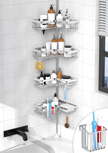 Cooeco 4-Tier Telescopic Shower Caddy, Adjustable Corner Storage Organizer No D