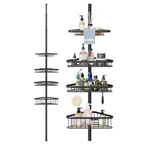 MALIRUE Telescopic Corner Shower Caddy, 4-Tier Adjustable Shower Shelves Rustproof Bathroom Corner Shelf, Shower Caddy No Drilling for Bathroom Accessories Storage, Black- 73-302cm