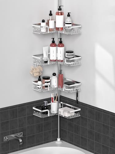 SWTYMIKI Telescopic Shower Caddy Corner - 4-Tier Rustproof Shower Corner Shelve