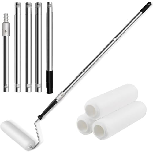Paint Roller with Telescopic Handle, Aluminum Telescopic Rod with 3 Paint Rollers for Household Project Painting and Renovation.