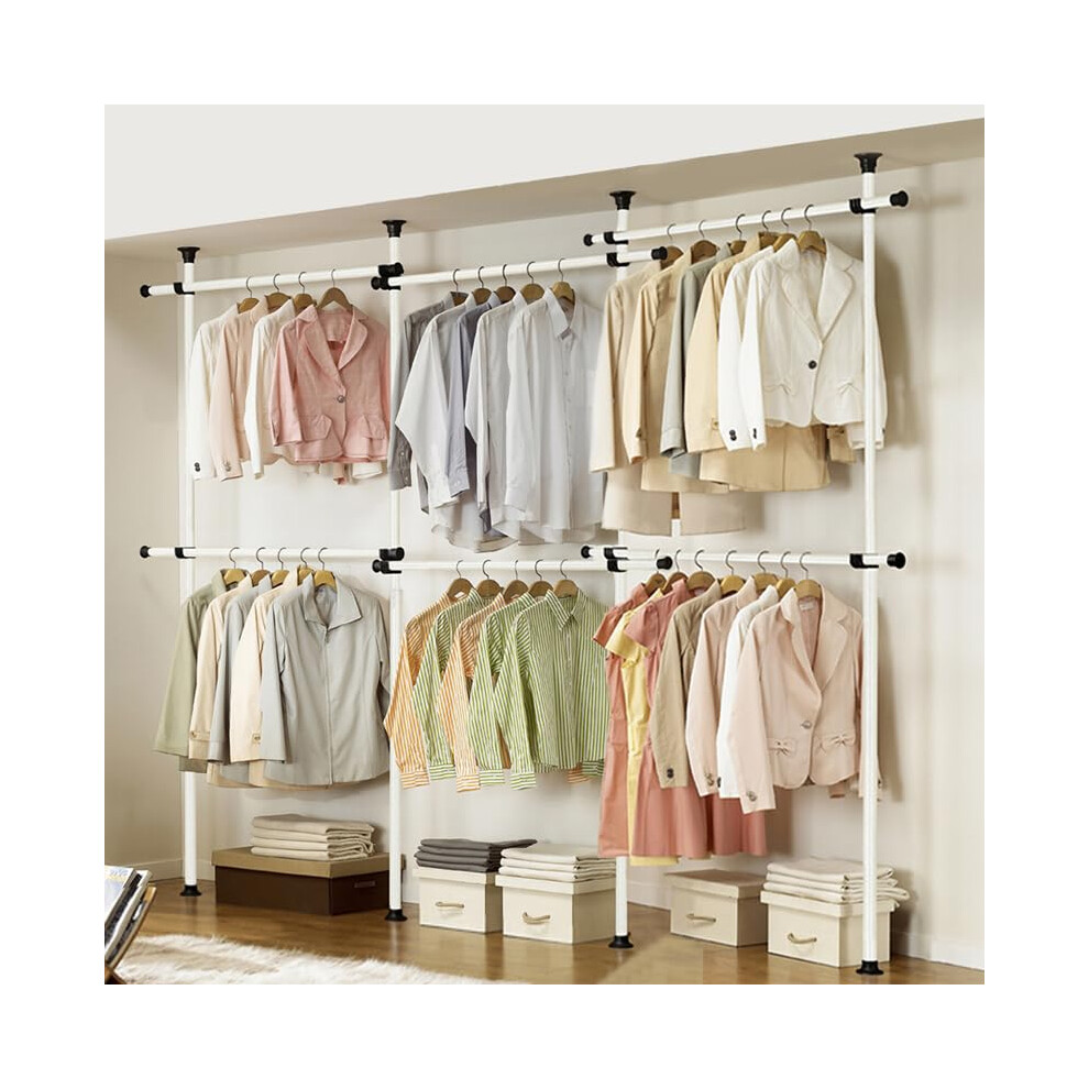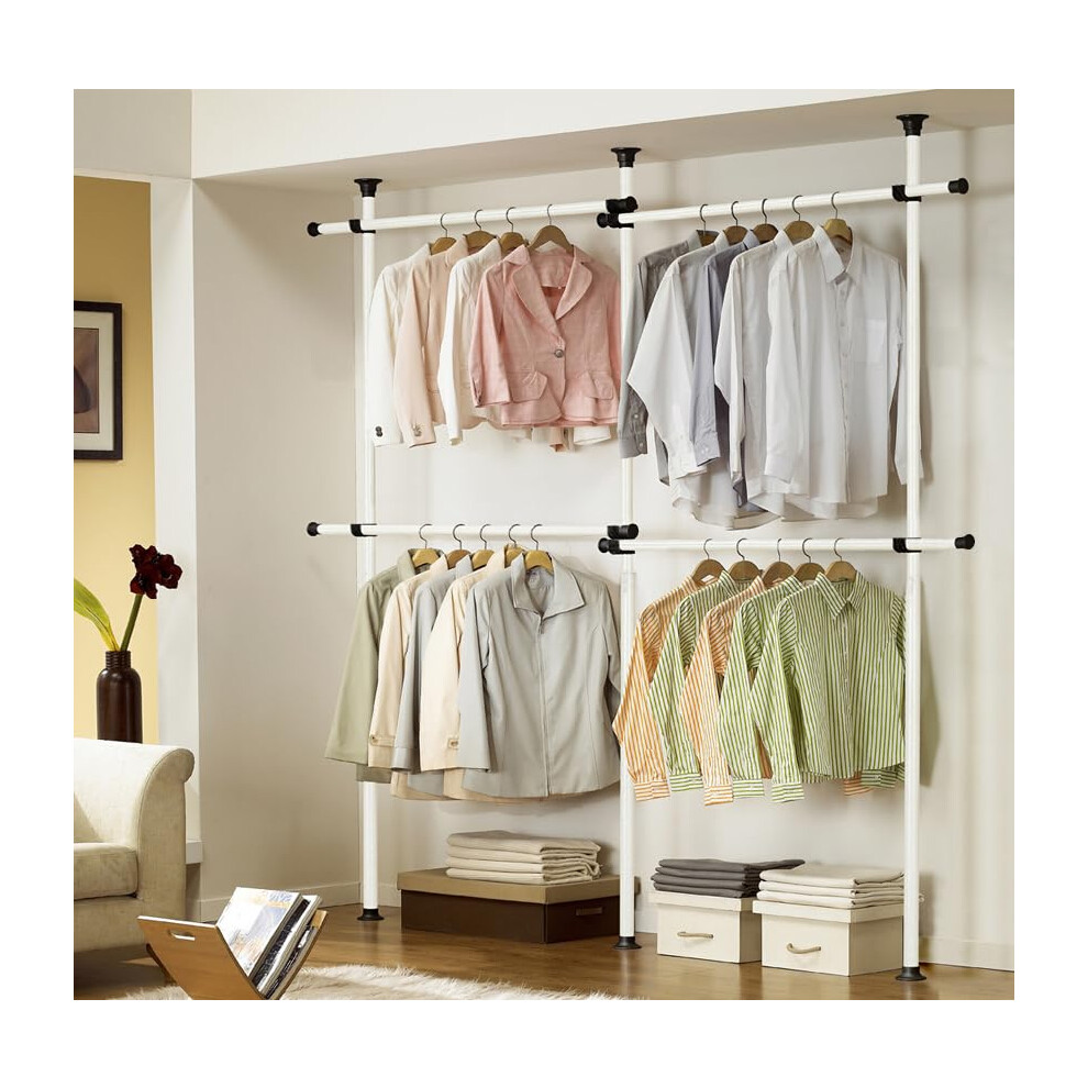 Cocoarm Telescopic Clothes Rail - Adjustable Wardrobe Organiser Heavy Duty Clothes Pole System (3 Poles 4 Bars)