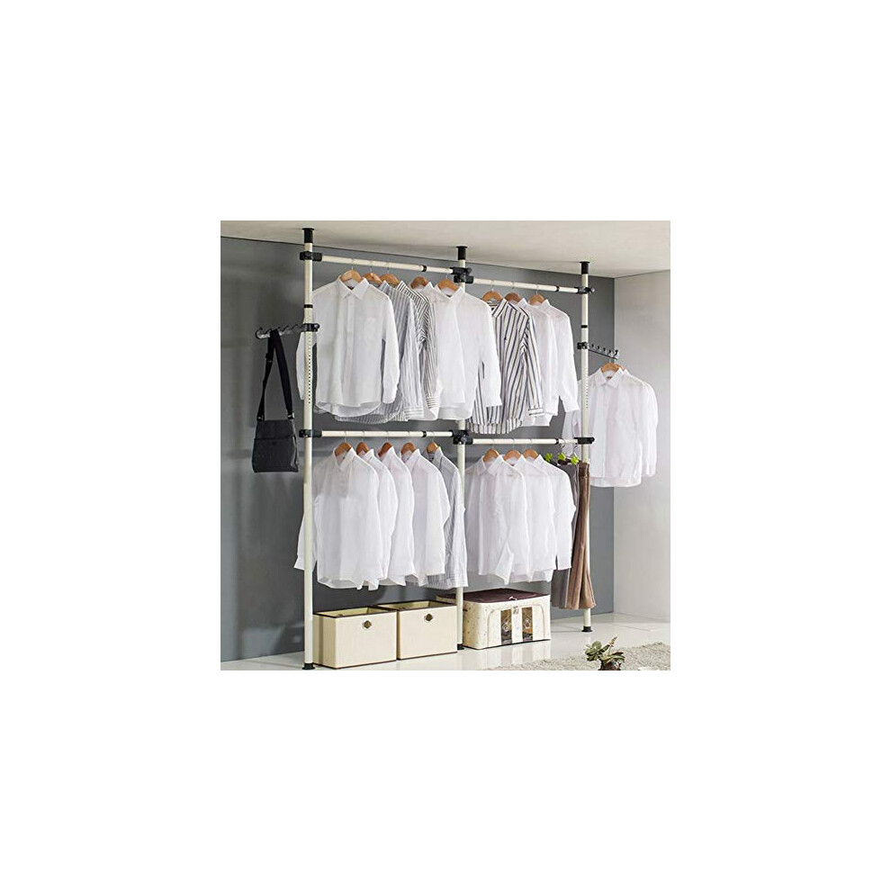 Youyijia Telescopic Clothes Rail, Heavy Duty Clothing Rack Adjustable Height 270-320cm Width 80-120cm Wardrobe Organizer Coat Hanger Garment Rack Hanging Rail for Clothes 2 Poles 2 Bars