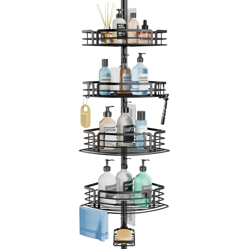 4-Tier Rustproof Telescopic Shower Caddy, Adjustable Storage No Drilling Black