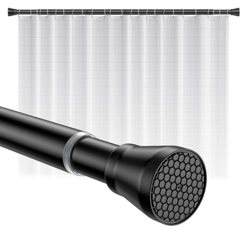 Stainless Steel Extendable Shower Curtain Pole 105-175cm Tension Rods for Curtains Telescopic Curtain Pole No Drilling Adjustable Shower Curtain Rail for Kitchen Cupboard Closet Bathroom Window, Black