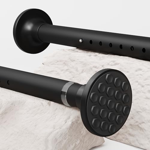 Black Tension Rod Shower Curtain Pole 68-100cm Spring Extendable Telescopic Rail No Drill for Net Curtains, Cupboards, Clothes