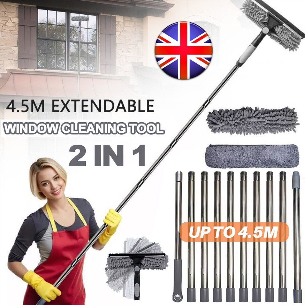 4.5M Telescopic Window Cleaner Extendable Long Reach Pole Glass Cleaner Squeegee