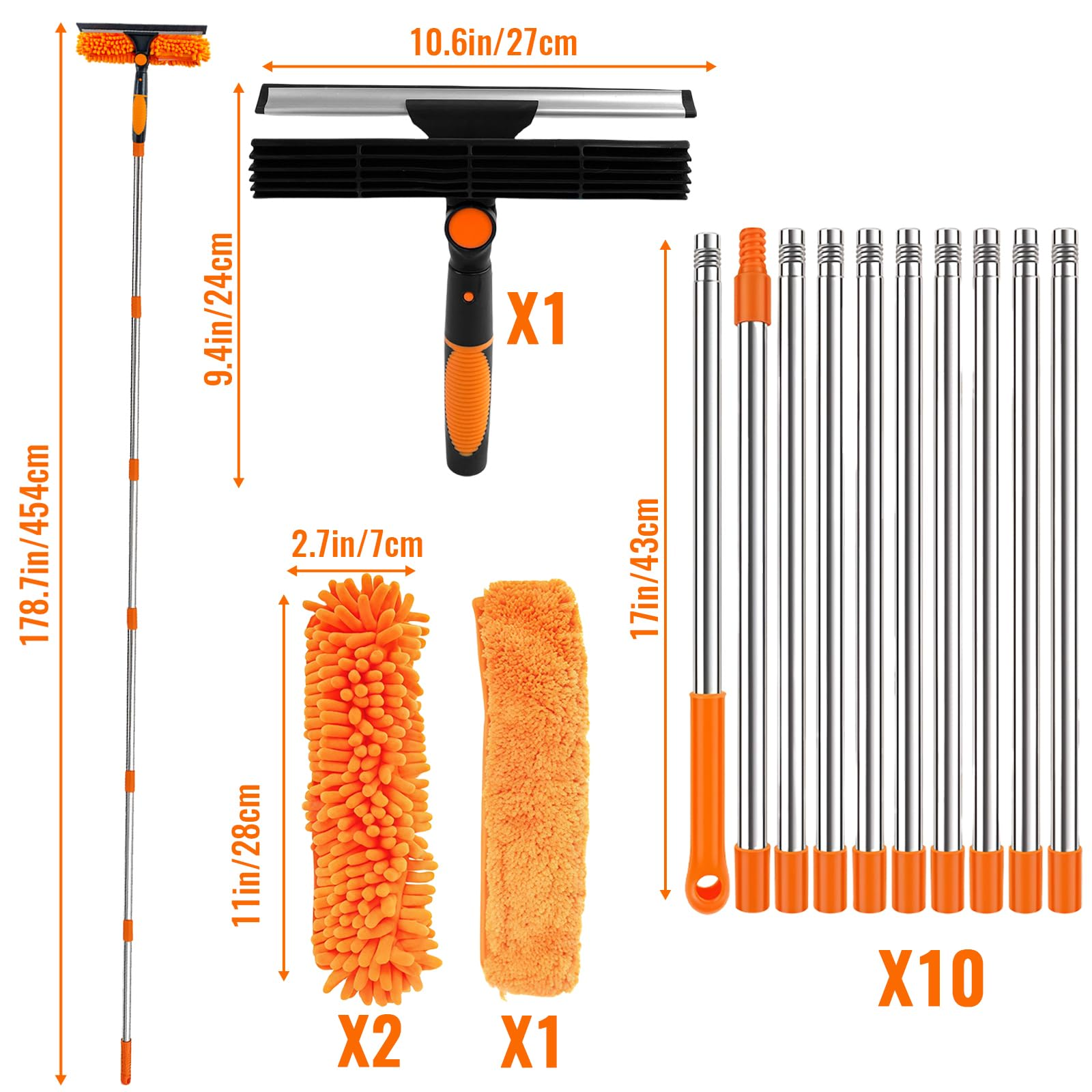 Telescopic Window Cleaner Tool 19.7ft Window Squeegee with Extension Pole