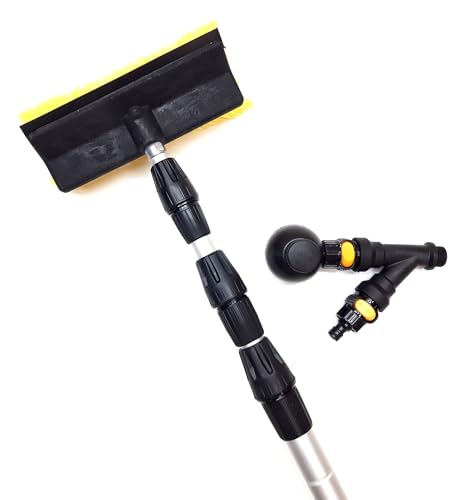 ZZwansuGE Window Cleaning With Telescopic Pole (5-12 M), With Water Connection (4 Spray Heads), 180° Rotatable Brush Head, Retractable Garden Roof Cleaner, Solar Panel Cleaning Kit,5m