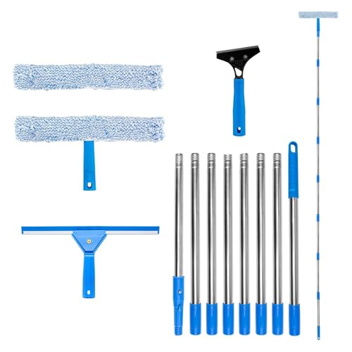 Ryanong Window Cleaning Combo Telescopic Pole 3m - 11m Extension Squeegee Washer for with Water Brush Head Extendable 3m/9.8ft