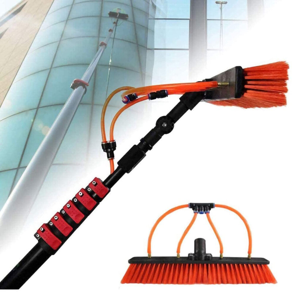 Extra Long Reach Telescopic Window Cleaning Pole with Water Fed Brush, Extendable 3.6m to 10.8m