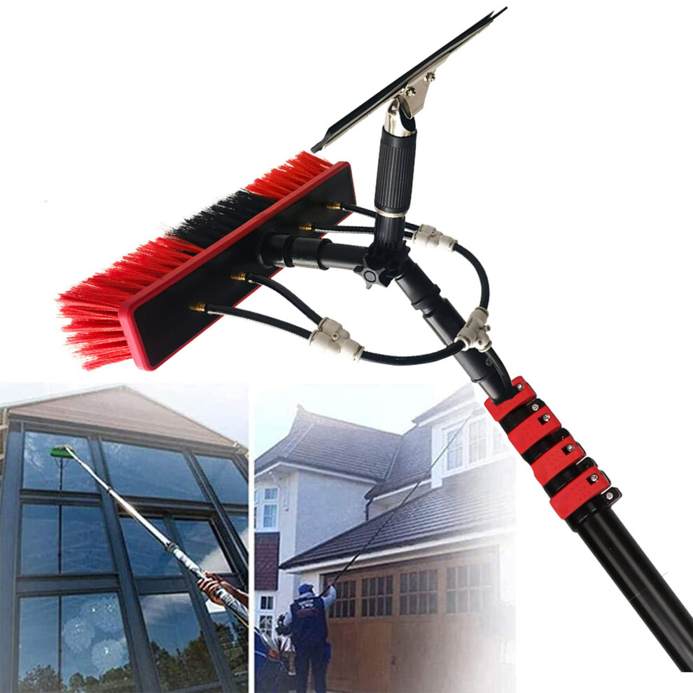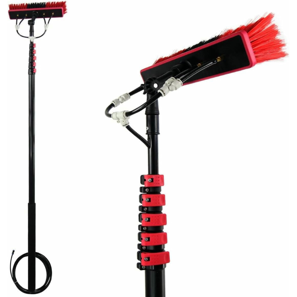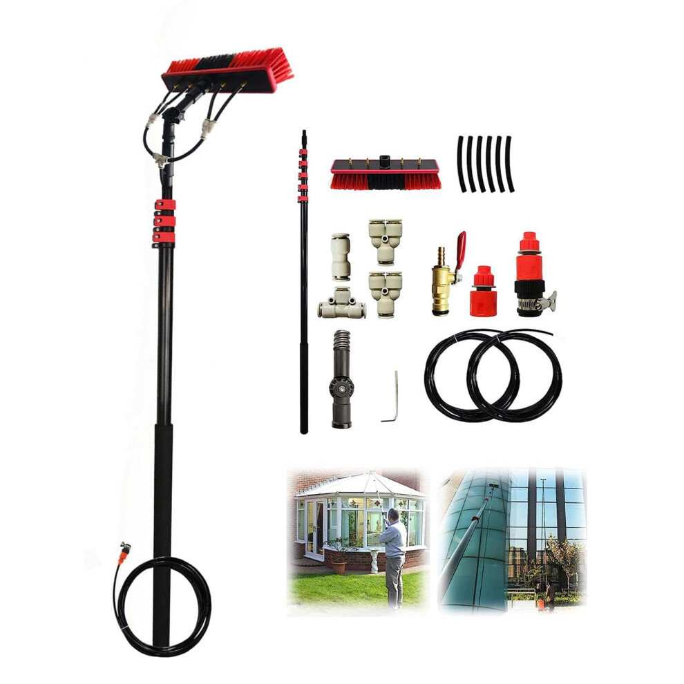 Telescopic Window Cleaning Pole with Water Fed Brush, Extra Long Reach for Solar Panels and Roofs