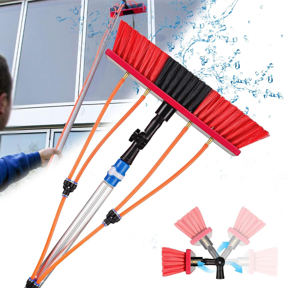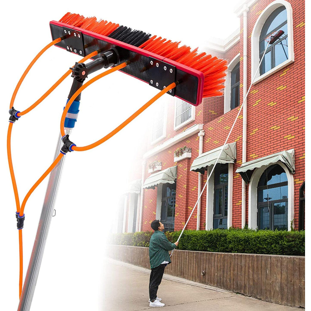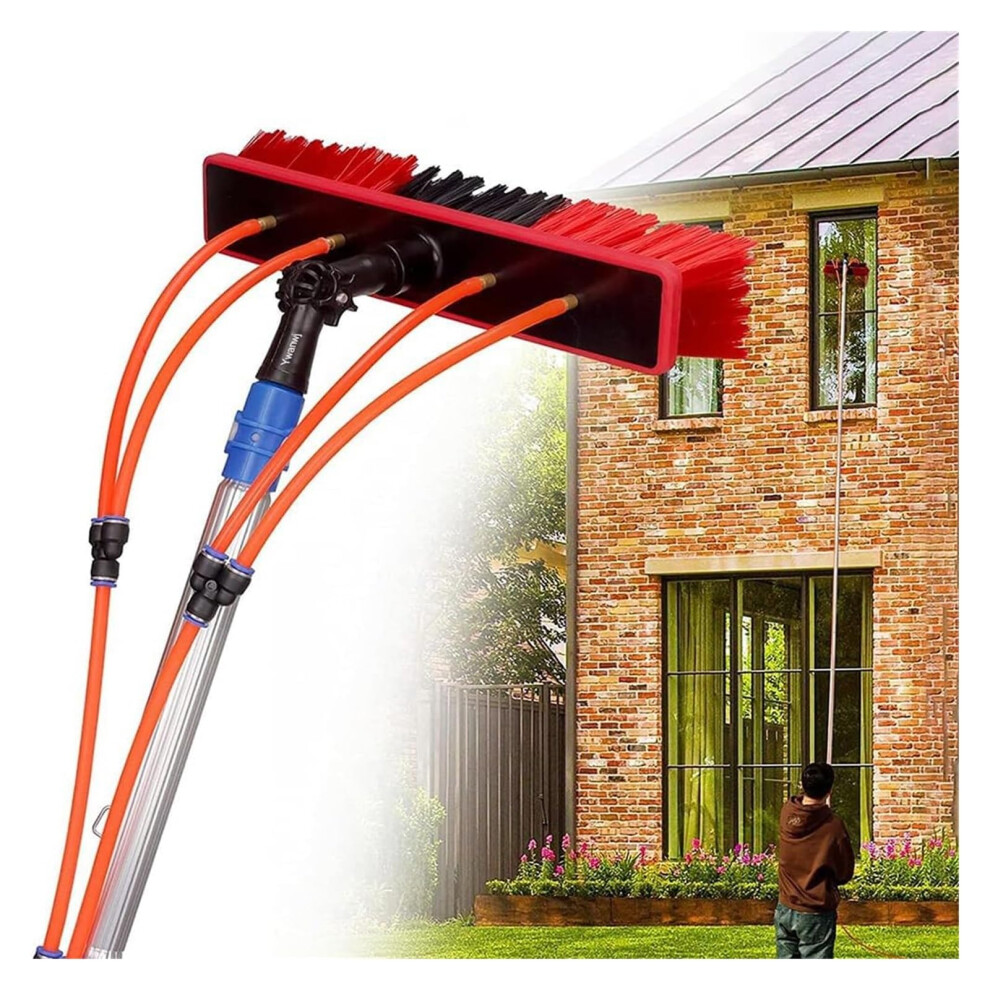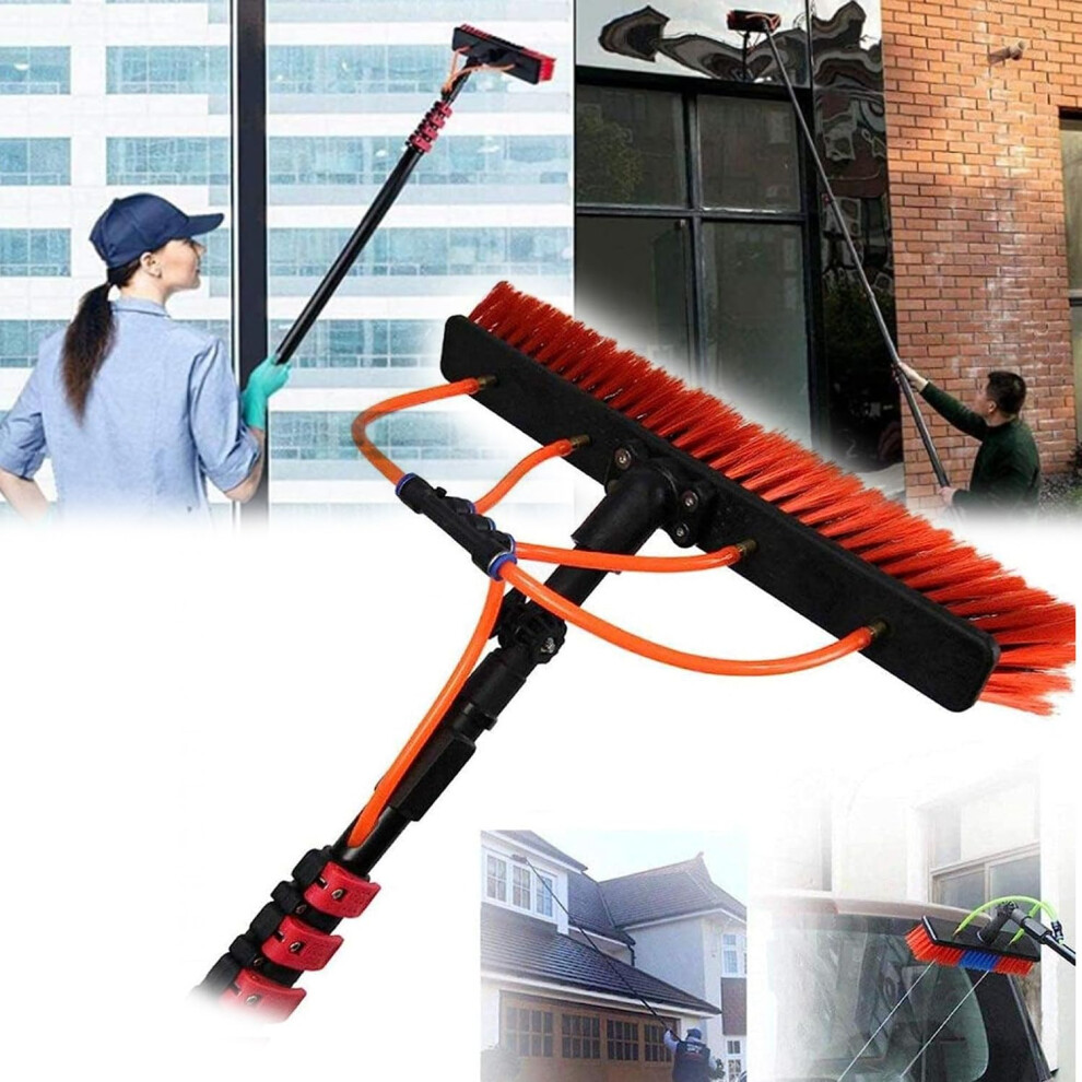 Telescopic Window Cleaning Pole with Water Fed Brush, Extra Long Reach for Solar Panels and Roofs