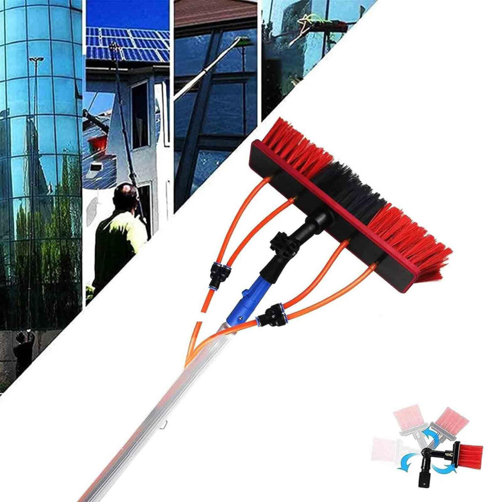 1236ft Telescopic Window Cleaning Pole with 360 Rotating Brush and Water Feed for Solar Panels