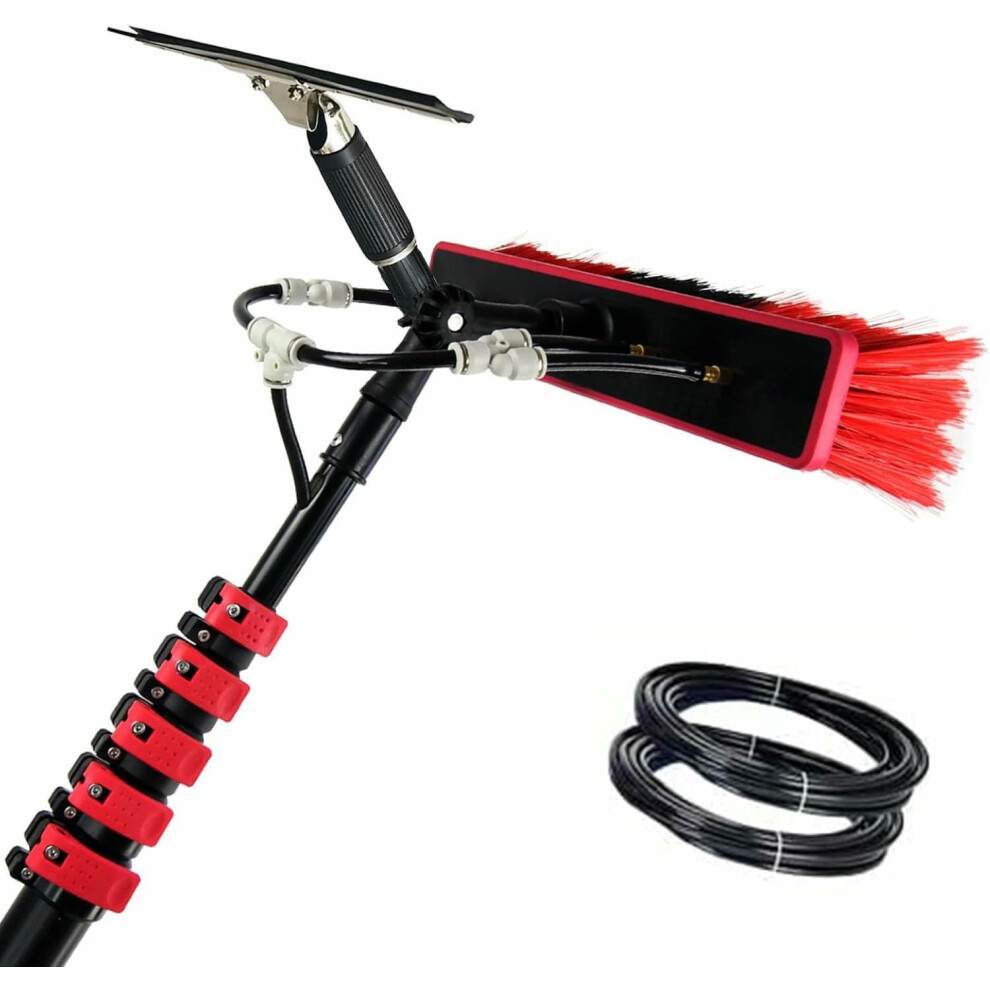 Telescopic Window Cleaning Pole with Integrated Water Fed Brush, Extra Long Reach for Solar Panels
