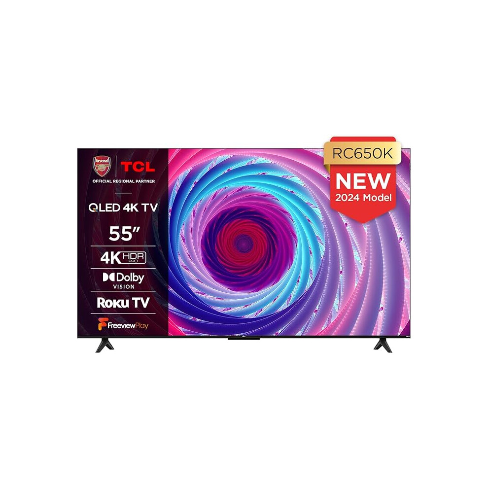 TCL 55RC650K 55-inch QLED Pro Television, 4K Ultra HD, Roku TV (Smart TV with Dolby Vision & Audio, HDR 10+, compatible with Google assistant & Alexa)