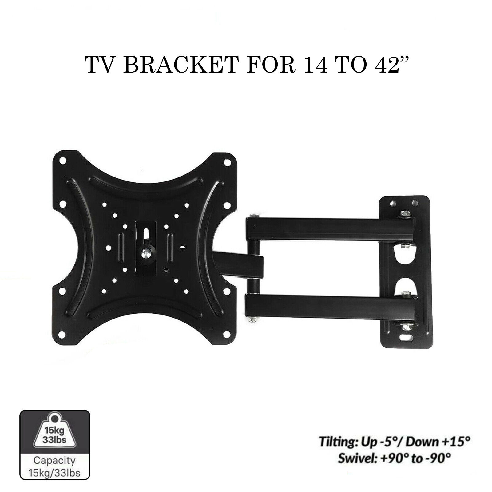 TV WALL BRACKET MOUNT 14-27" SWIVEL & TILT FULL MOTION FOR LED PLASMA TELEVISION