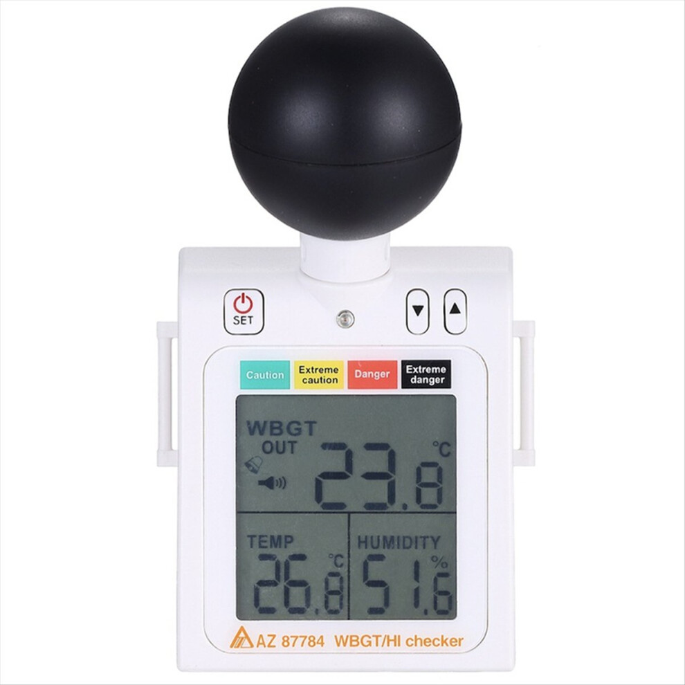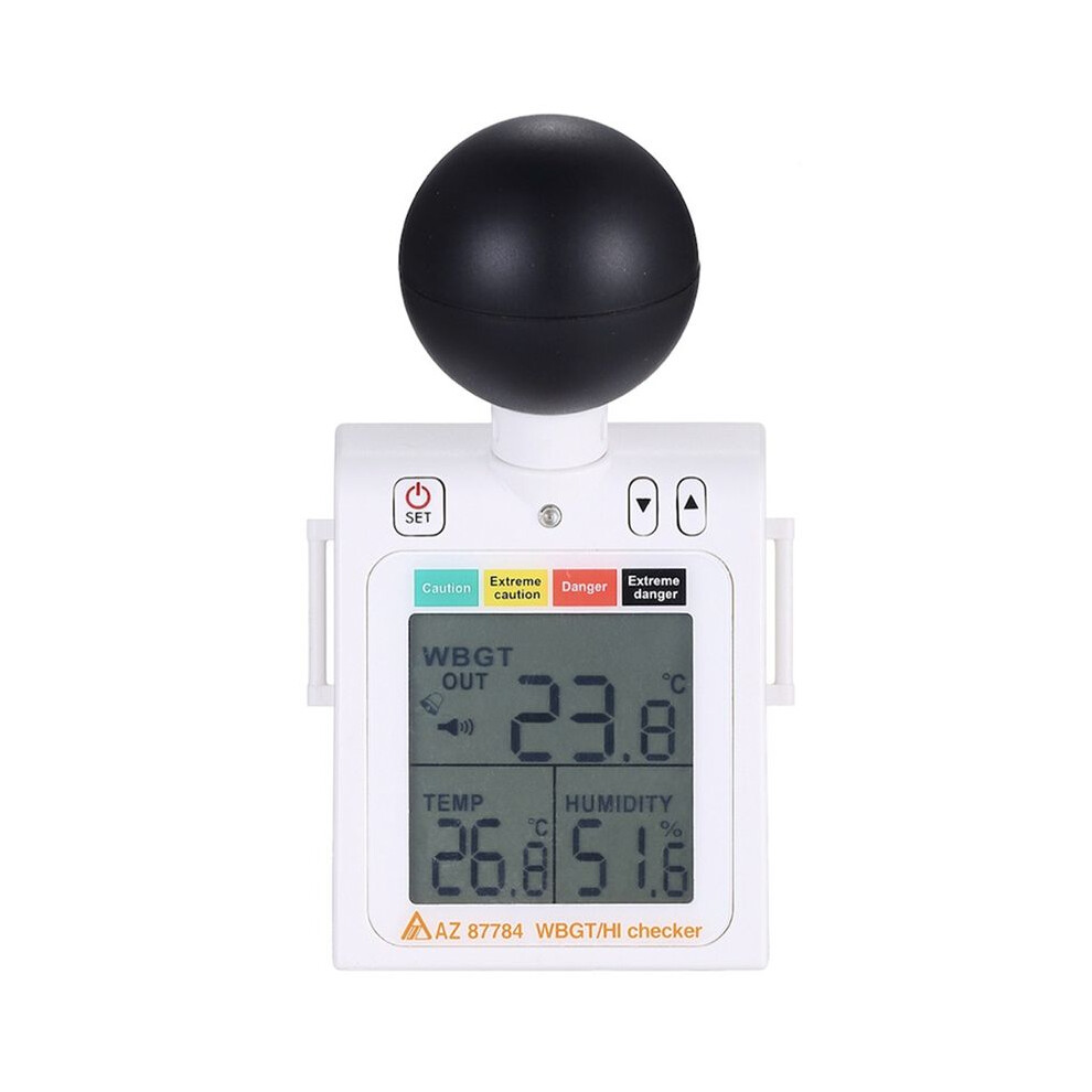 2-in-1 WBGT + HI Heat Index Checker Wet Bulb Globe Temperature Stress Meter with Level Indicator Audible Alarms