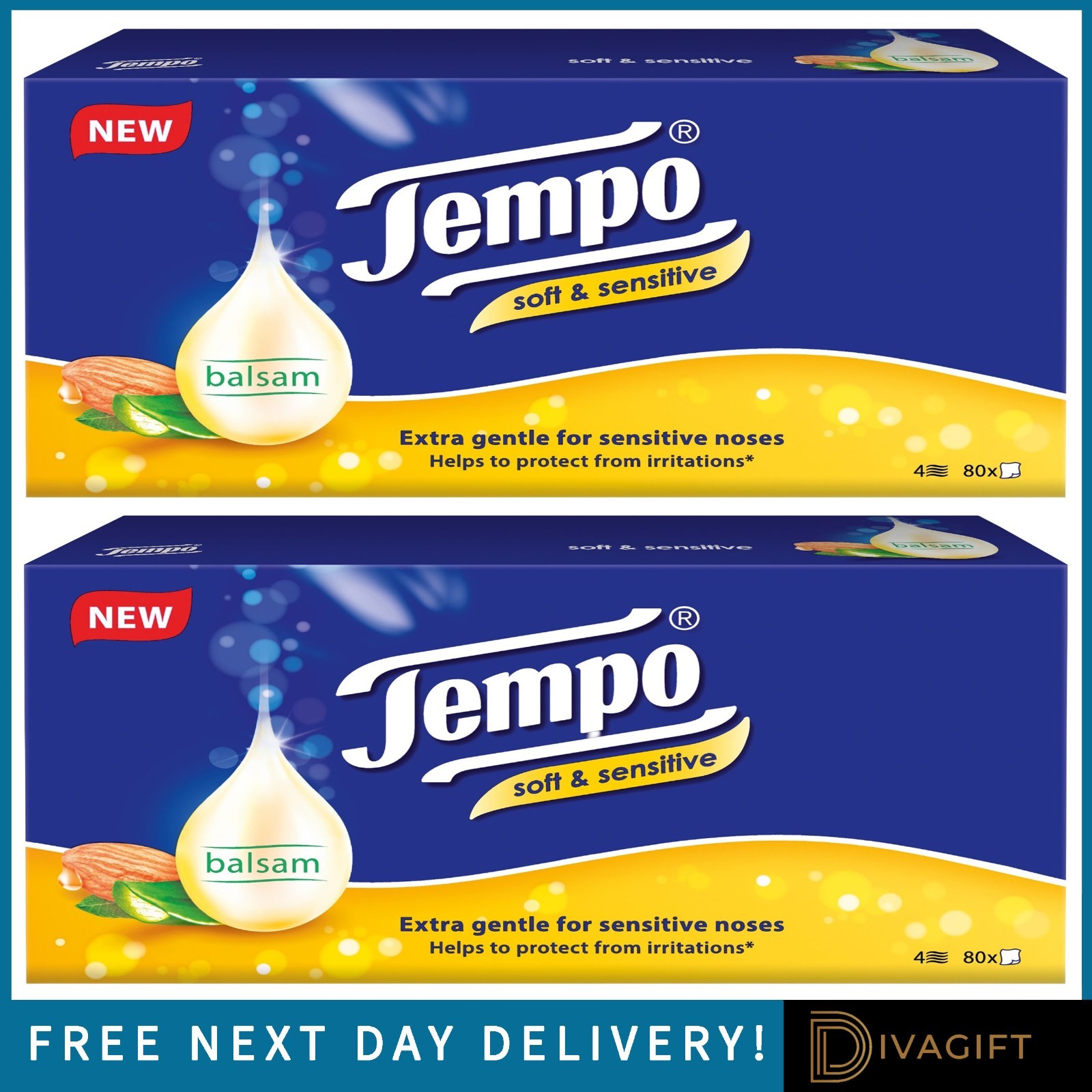 TEMPO SOFT & SENSITIVE BALSAM 4PLY FACIAL TISSUES 80 SHEETS PER BOX EXTRA GENTLE