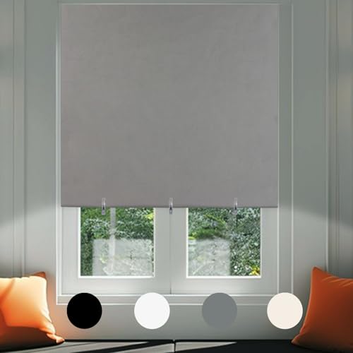 No Drill Blackout Blind Stick on Curtains Thermal Insulated, Adjustable Clips Self Adhesive Cut to Size Easy Fit Temporary Blackout Window Blinds for Bedroom, Nursery (1, Grey, 90W x 180H cm)