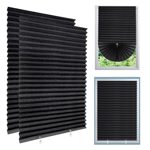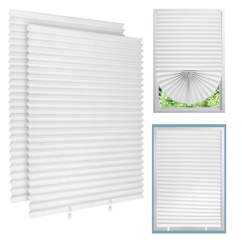 No Drill Blinds Non-woven Fabric Cut to Size Blackout Thermal Easy Fit Self Adhesive Stick On Pleated Temporary Shades Clip In Paper Blinds for Windows Patio Doors Kitchen Bathroom Bedroom