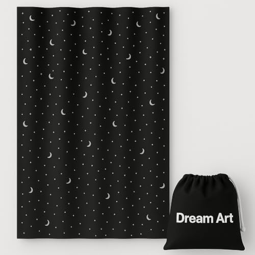Dream Art Anywhere Temporary Portable Blackout Curtain/Adjustable Blackout Shades Blinds with Suction Cups for Bedroom or Travel Use,Silver Moon& Star Foil Print Black Curtain,1 pc