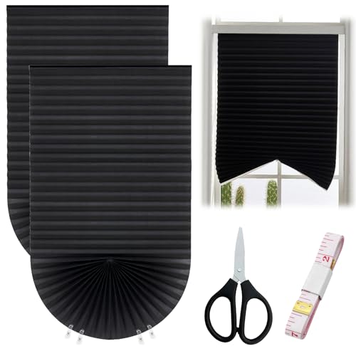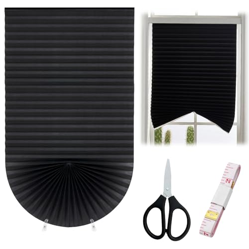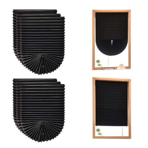 6 PCS Temporary Blinds for Windows Stick On,91 * 180 CM No Drill Paper Blinds Self Adhesive, Temporary Blackout Shades Easy Fit Easy Cut,Light Filtering Pleated Shades for Home, Black