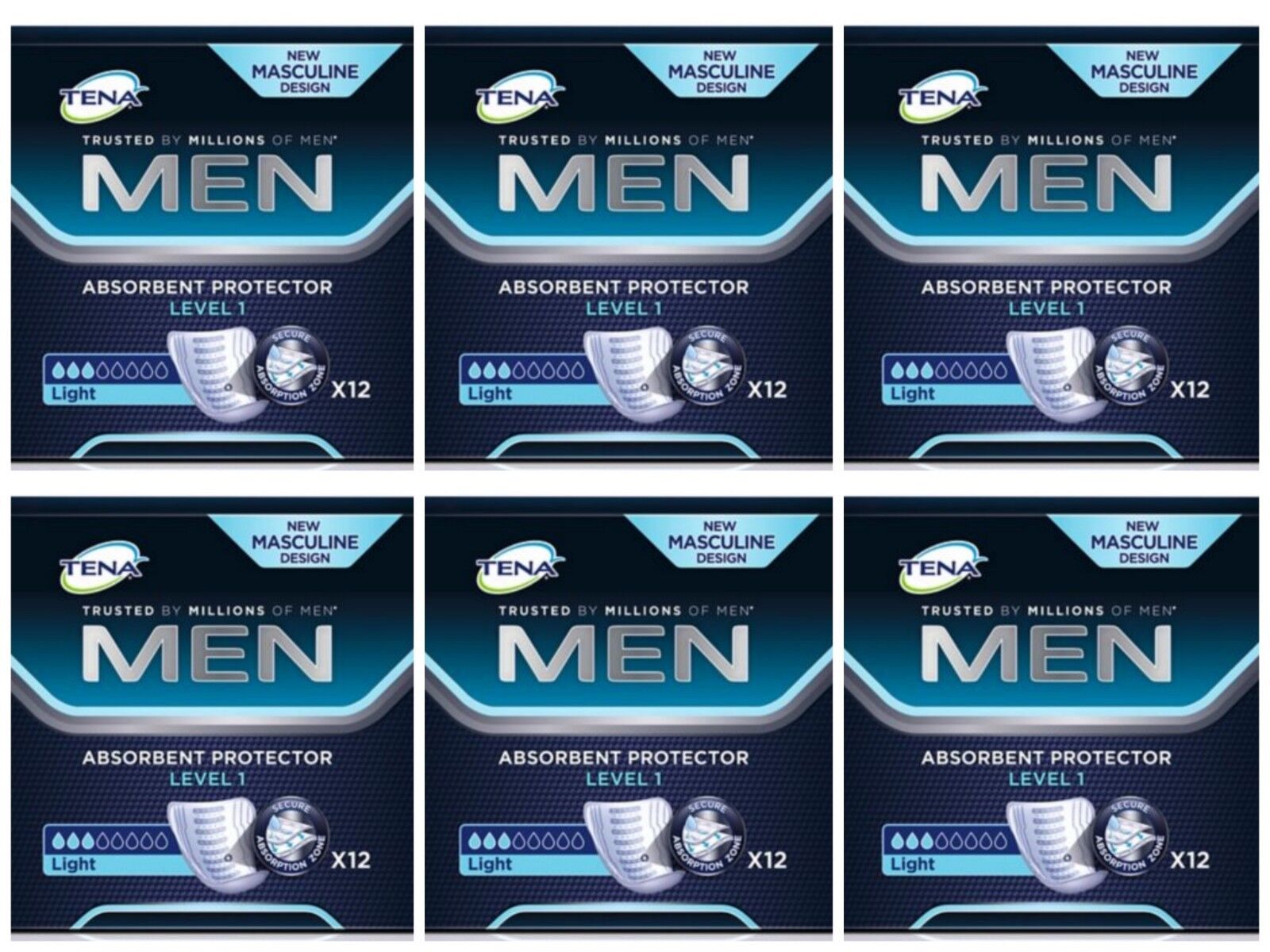 TENA Men Absorbent Protectors Level 1 (Light) X72 (6 packs of 12) Weak Bladder