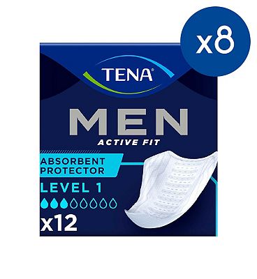 96 x TENA Men Absorbent Protector - Level 1 - ( 8 Packs of 12 )