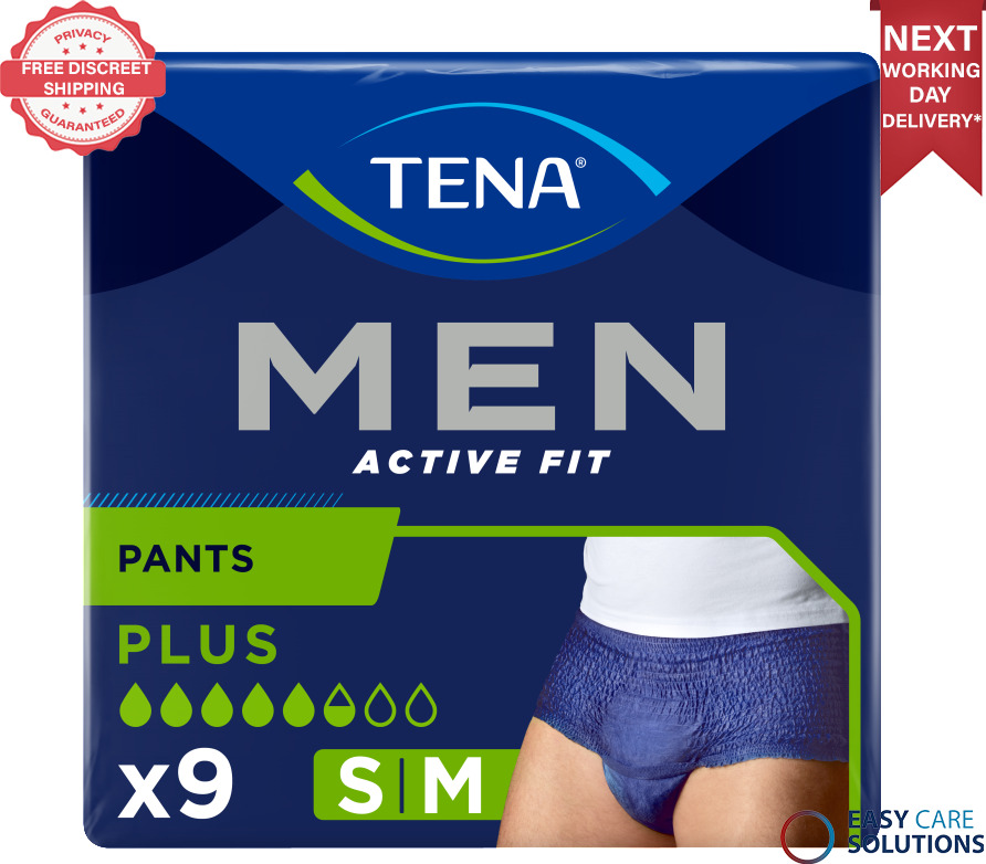 9 x TENA Men Active Fit Pants Plus|Small/Medium|1 Pack of 9
