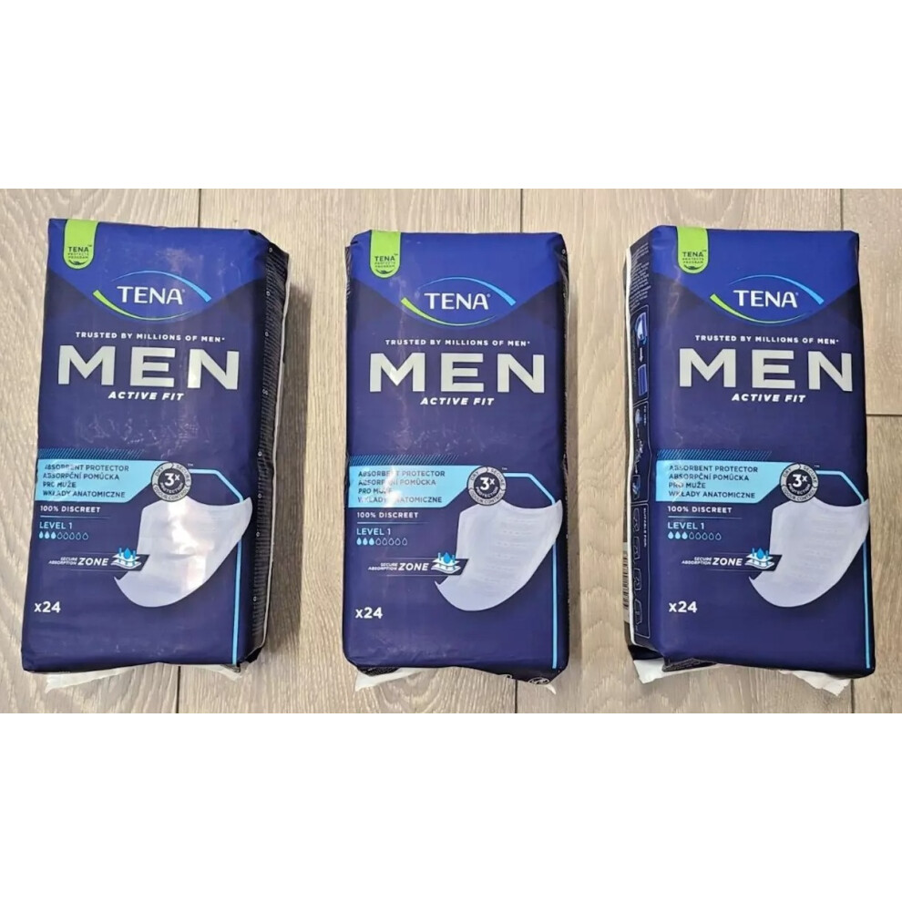 72 x TENA Men Level 1 Active Fit Absorbent Protector Pads For Men 3 x Pks 24