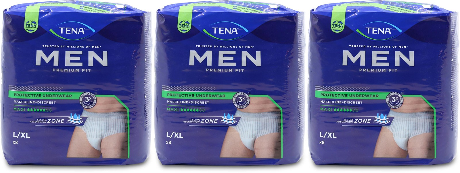 Tena Men Premium Fit Protective Underwear Maxi L/XL 8 Pack X 3