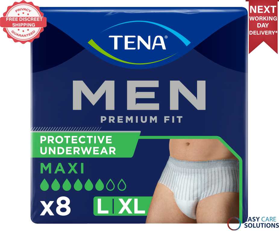 TENA Men Pants Level 4 Premium Fit Underwear Size Large 1 x Pack Of 8 Pants