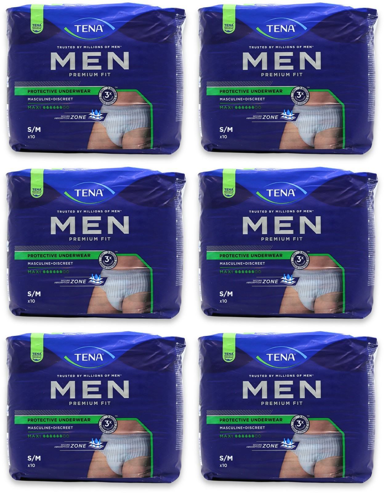 Tena Men Premium Fit Protective Underwear Maxi S/M 10 Pack X 6