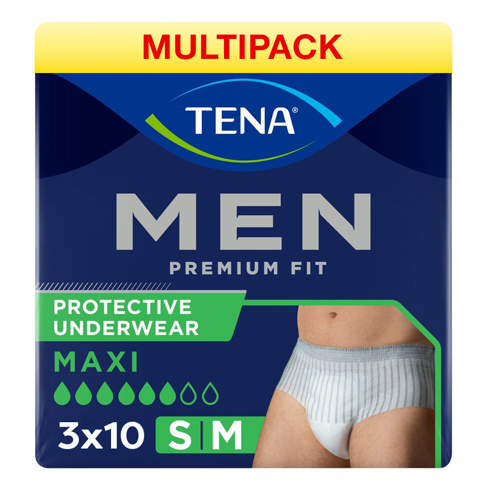 3x TENA Men Premium Fit Maxi Incontinence Pants - Small/Medium - Pack of 10