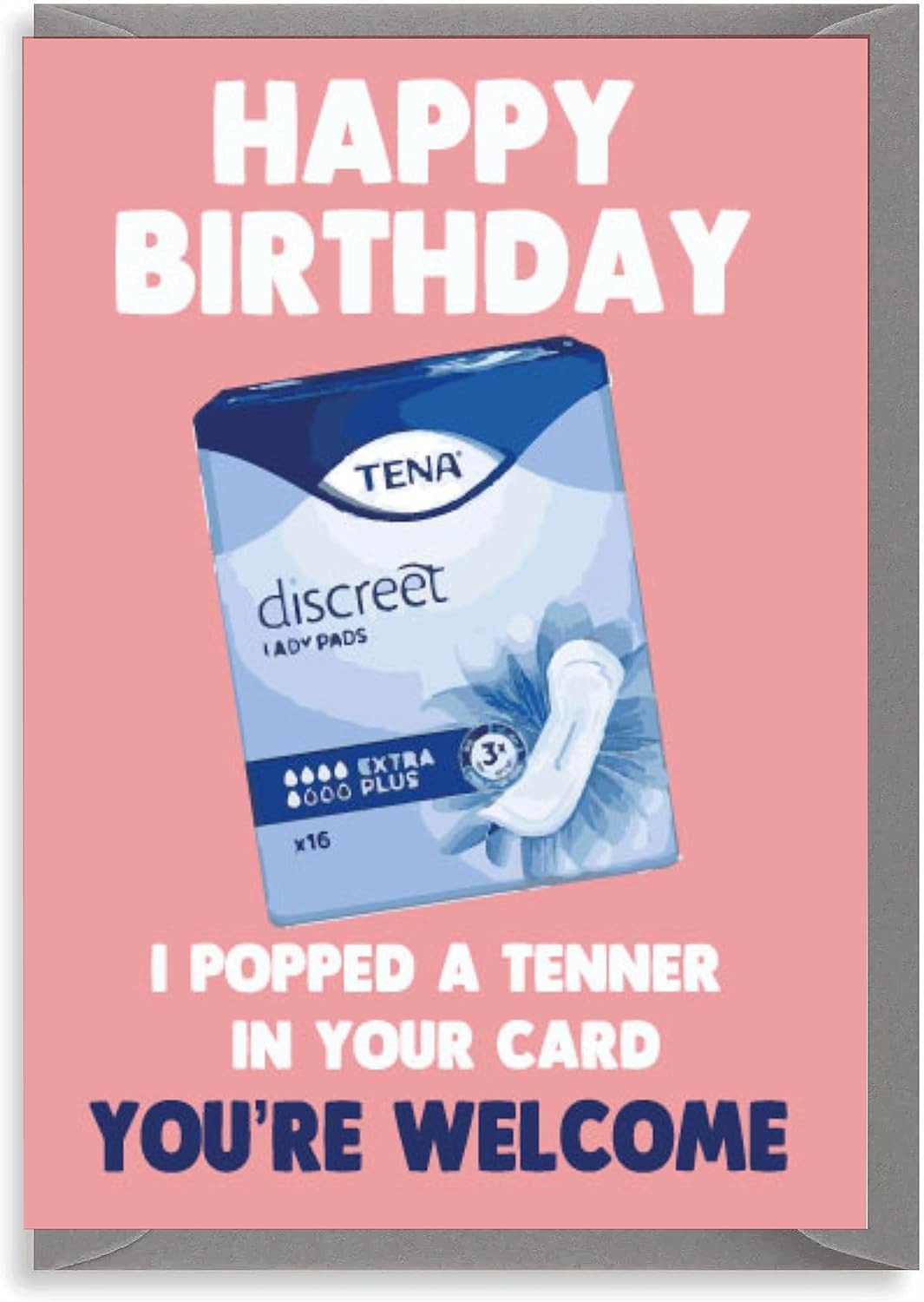 Funny Birthday Card - I Popped a Tenner in Your Card - Tena Pad Joke - Rude Adul
