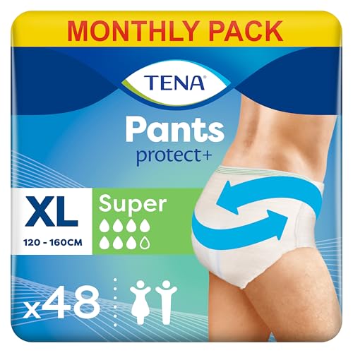 TENA Pants Super, 48 pairs, Unisex Incontinence Pants (4 x 12 packs) for Women and Men with Heavy Bladder Weakness, Designed for Everyday Life with Triple Protection and Dual Absorption Zones, Size XL