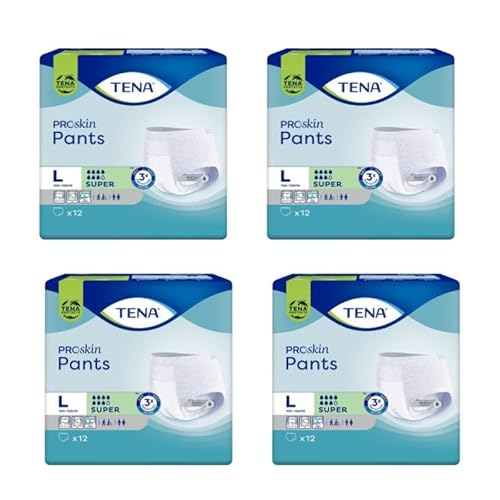 Tena TENA Pants Super, 48 pairs of Unisex Incontinence (4 x 12 packs) for Women and Men with Heavy Bladder Weakness, Size Large